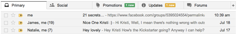 Kristi Hines é um dos muitos profissionais de marketing inteligentes que delinearam outras opções para gerir os seus separadores do Gmailincluindo desligá-los completamente, por isso consulte a publicação dela se quiser saber mais sobre isso.